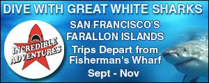 You may have seen a shark cage on TV. Our shark cage floats at the surface and there’s no need for cage divers to wear bulky air tanks. Air is supplied by a hookah system on our dive boat.